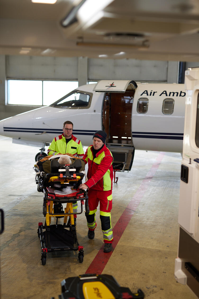 Im Rahmen des Transportes werden Sie von einem regionalen Ambulanzdienst in unserem Auftrag abgeholt, je nach Gesundheitszustand bereits in Begleitung unserer Medical Crew. Am Flughafen erfolgt dann die Umlagerung in unseren Ambulanzjet. Während des Fluges überwacht unsere Crew regelmäßig Ihre Vitalparameter am Monitor und versorgt Sie. Nach der Landung erfolgt der bodengebundene Weitertransport zur Zielklinik in Begleitung unserer Crew oder – wenn zwingend erforderlich – durch externe Notärztinnen bzw. -ärzte vor Ort. Die Zielklinik erhält bereits nach der Landung eine telefonische Vorabinformation über den aktuellen Gesundheitszustand.