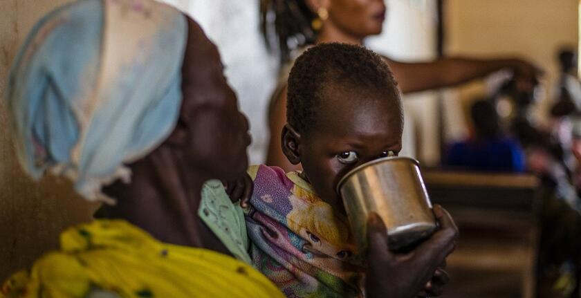 Menschen auf der Flucht können weder säen noch ernten. Die Folge sind Hunger und tiefe Armut. Vor allem unterernährte Kinder und Mütter stehen im Fokus der Hilfsmaßnahmen. In der Provinz Western Bahr el Ghazal im Nordwesten des Landes behandeln die Johanniter schwer unterernährte Kleinkinder mit therapeutischer Nahrung, die mit Vitaminen und Mineralien angereichert ist. Leicht unterernährte Kinder und unterernährte schwangere und stillende Frauen werden mit Zusatznahrung versorgt. Jedes Jahr kommt es in der Region zu einer Hungerperiode, da die Ernte meist nicht ausreicht, um die Bevölkerung zu ernähren. In dieser Zeit verschärft sich die Nahrungsmittelknappheit, die 2017 durch eine zusätzliche Dürre besonders ausgeprägt war und Millionen Menschen bedroht hat.