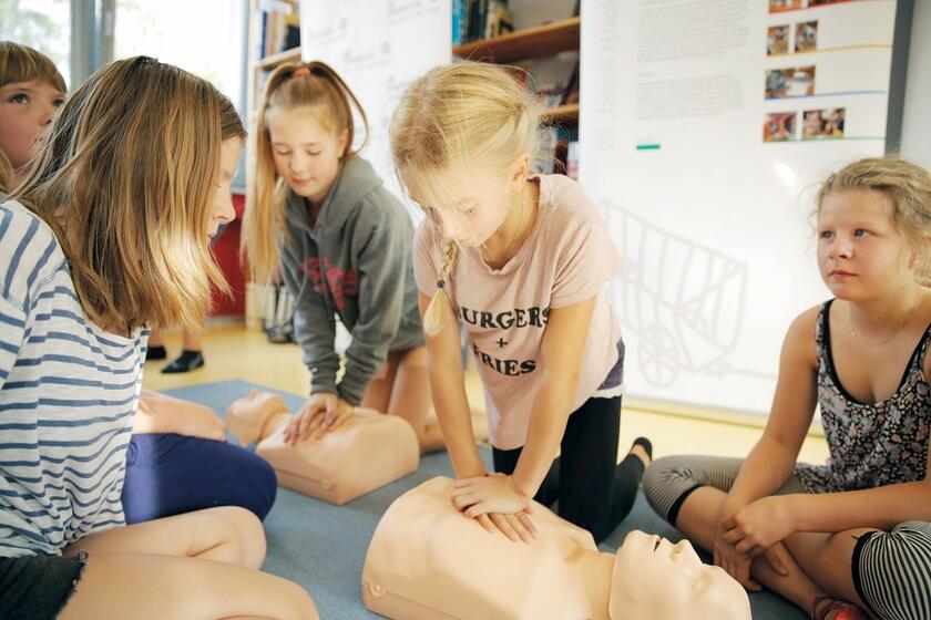 Mit dem Projekt Herzensretter wollen wir alle Kinder und Jugendlichen in den wichtigsten Erste-Hilfe-Maßnahmen wie beispielsweise stabile Seitenlage und Reanimation fit machen.
