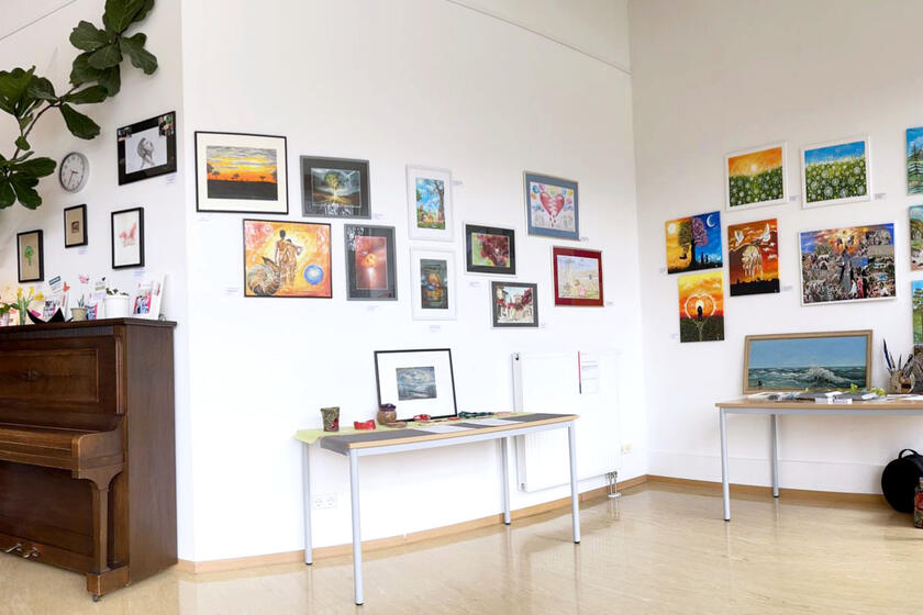 Der jüngste Aussteller, Elias, 4 Jahre alt, wünschte sich nichts sehnlicher, als später ein Feuerwehrmann zu sein, um anderen zu helfen. Die älteste Künstlerin, 78 Jahre alt, präsentierte faszinierende Acryl-Pouring-Werke.